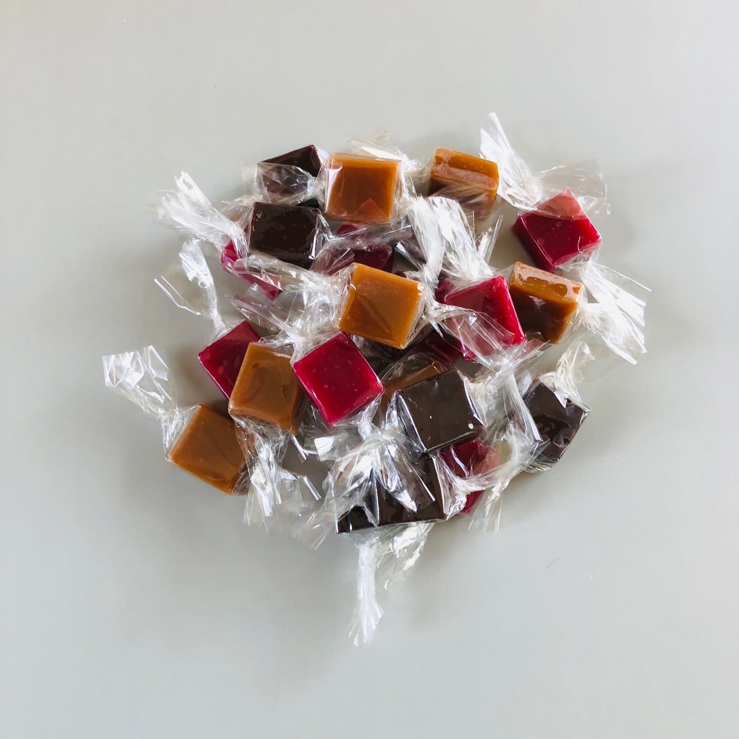 酸味と甘味のバランスが際立つピンクのキャラメル。